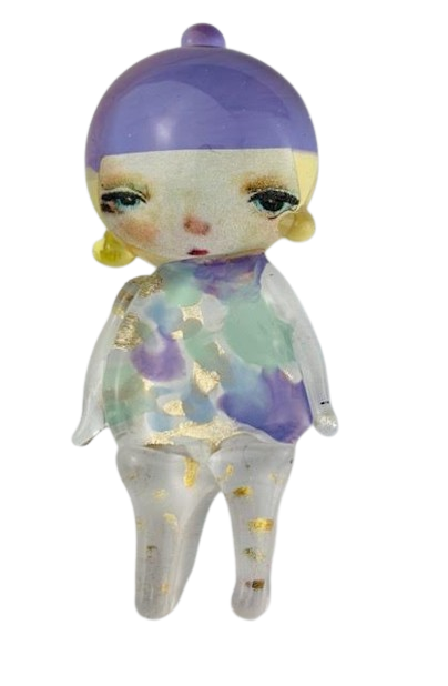 Autorska broszka wykonana z pełnego szkła, wytapiana ręcznie i malowana. Szkło hartowane, najwyższej jakości, bardzo trwałe. Każda z laleczek jest unikatowa - ręcznie malowana, szklana soczewka daje efekt złudzenia optycznego i głębi spojrzenia.