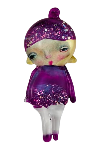 Autorska broszka wykonana z pełnego szkła, wytapiana ręcznie i malowana. Szkło hartowane, najwyższej jakości, bardzo trwałe. Każda z laleczek jest unikatowa - ręcznie malowana, szklana soczewka daje efekt złudzenia optycznego i głębi spojrzenia.