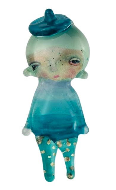 Autorska broszka wykonana z pełnego szkła, wytapiana ręcznie i malowana. Szkło hartowane, najwyższej jakości, bardzo trwałe. Każda z laleczek jest unikatowa - ręcznie malowana, szklana soczewka daje efekt złudzenia optycznego i głębi spojrzenia.