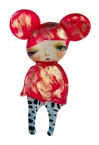 Autorska broszka wykonana z pełnego szkła, wytapiana ręcznie i malowana. Szkło hartowane, najwyższej jakości, bardzo trwałe. Każda z laleczek jest unikatowa - ręcznie malowana, szklana soczewka daje efekt złudzenia optycznego i głębi spojrzenia.