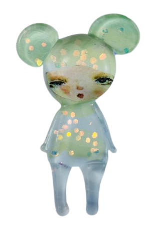 Autorska broszka wykonana z pełnego szkła, wytapiana ręcznie i malowana. Szkło hartowane, najwyższej jakości, bardzo trwałe. Każda z laleczek jest unikatowa - ręcznie malowana, szklana soczewka daje efekt złudzenia optycznego i głębi spojrzenia.