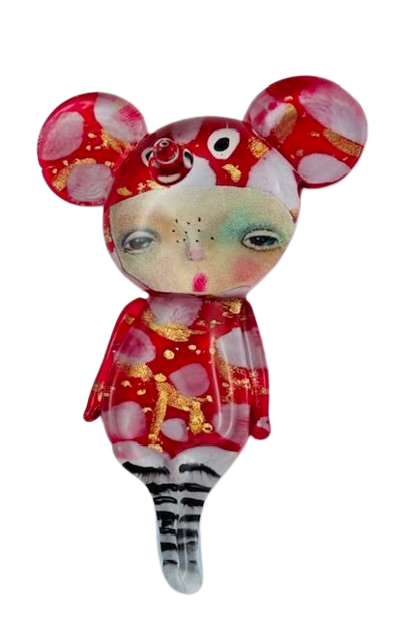 Autorska broszka wykonana z pełnego szkła, wytapiana ręcznie i malowana. Szkło hartowane, najwyższej jakości, bardzo trwałe. Każda z laleczek jest unikatowa - ręcznie malowana, szklana soczewka daje efekt złudzenia optycznego i głębi spojrzenia.