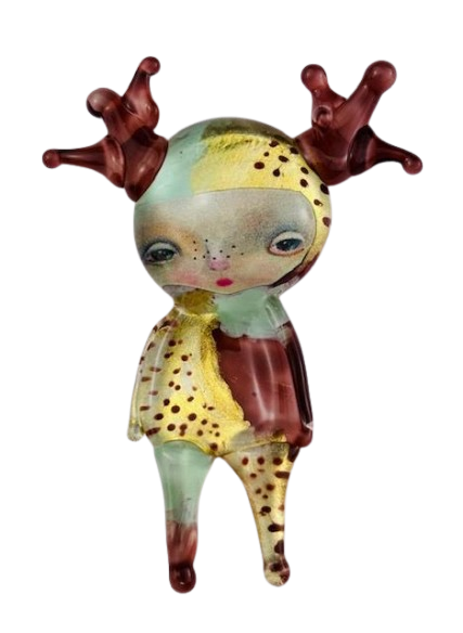 Autorska broszka wykonana z pełnego szkła, wytapiana ręcznie i malowana. Szkło hartowane, najwyższej jakości, bardzo trwałe. Każda z laleczek jest unikatowa - ręcznie malowana, szklana soczewka daje efekt złudzenia optycznego i głębi spojrzenia.