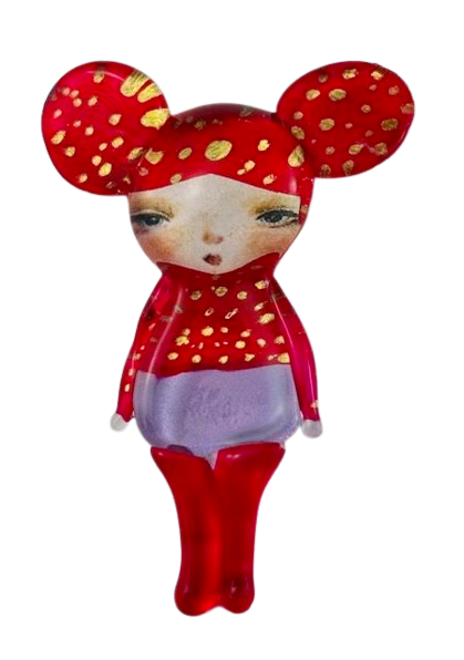 Autorska broszka wykonana z pełnego szkła, wytapiana ręcznie i malowana. Szkło hartowane, najwyższej jakości, bardzo trwałe. Każda z laleczek jest unikatowa - ręcznie malowana, szklana soczewka daje efekt złudzenia optycznego i głębi spojrzenia.