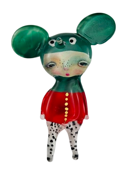 Autorska broszka wykonana z pełnego szkła, wytapiana ręcznie i malowana. Szkło hartowane, najwyższej jakości, bardzo trwałe. Każda z laleczek jest unikatowa - ręcznie malowana, szklana soczewka daje efekt złudzenia optycznego i głębi spojrzenia.