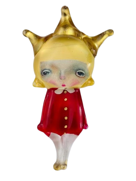 Autorska broszka wykonana z pełnego szkła, wytapiana ręcznie i malowana. Szkło hartowane, najwyższej jakości, bardzo trwałe. Każda z laleczek jest unikatowa - ręcznie malowana, szklana soczewka daje efekt złudzenia optycznego i głębi spojrzenia.