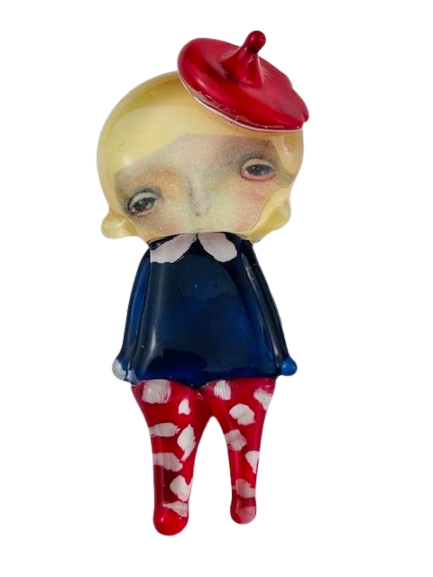 Autorska broszka wykonana z pełnego szkła, wytapiana ręcznie i malowana. Szkło hartowane, najwyższej jakości, bardzo trwałe. Każda z laleczek jest unikatowa - ręcznie malowana, szklana soczewka daje efekt złudzenia optycznego i głębi spojrzenia.