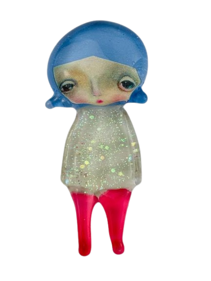 Autorska broszka wykonana z pełnego szkła, wytapiana ręcznie i malowana. Szkło hartowane, najwyższej jakości, bardzo trwałe. Każda z laleczek jest unikatowa - ręcznie malowana, szklana soczewka daje efekt złudzenia optycznego i głębi spojrzenia.