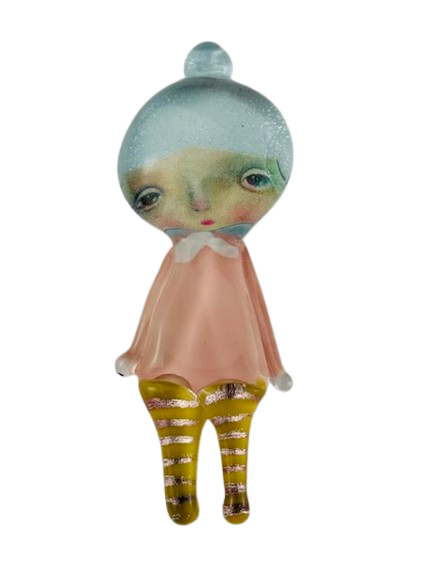 Autorska broszka wykonana z pełnego szkła, wytapiana ręcznie i malowana. Szkło hartowane, najwyższej jakości, bardzo trwałe. Każda z laleczek jest unikatowa - ręcznie malowana, szklana soczewka daje efekt złudzenia optycznego i głębi spojrzenia.