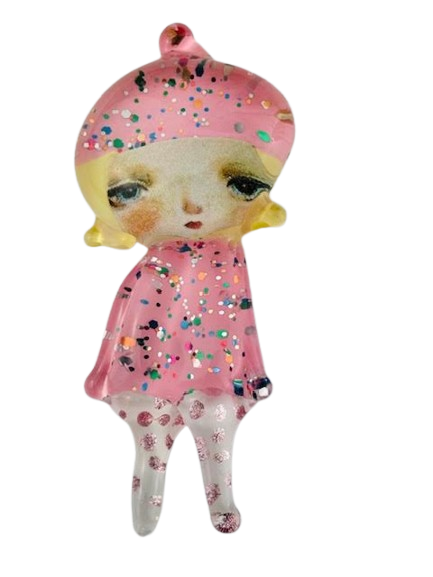 Autorska broszka wykonana z pełnego szkła, wytapiana ręcznie i malowana. Szkło hartowane, najwyższej jakości, bardzo trwałe. Każda z laleczek jest unikatowa - ręcznie malowana, szklana soczewka daje efekt złudzenia optycznego i głębi spojrzenia.