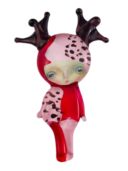 Autorska broszka wykonana z pełnego szkła, wytapiana ręcznie i malowana. Szkło hartowane, najwyższej jakości, bardzo trwałe. Każda z laleczek jest unikatowa - ręcznie malowana, szklana soczewka daje efekt złudzenia optycznego i głębi spojrzenia.