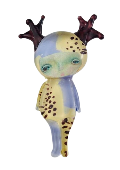 Autorska broszka wykonana z pełnego szkła, wytapiana ręcznie i malowana. Szkło hartowane, najwyższej jakości, bardzo trwałe. Każda z laleczek jest unikatowa - ręcznie malowana, szklana soczewka daje efekt złudzenia optycznego i głębi spojrzenia.