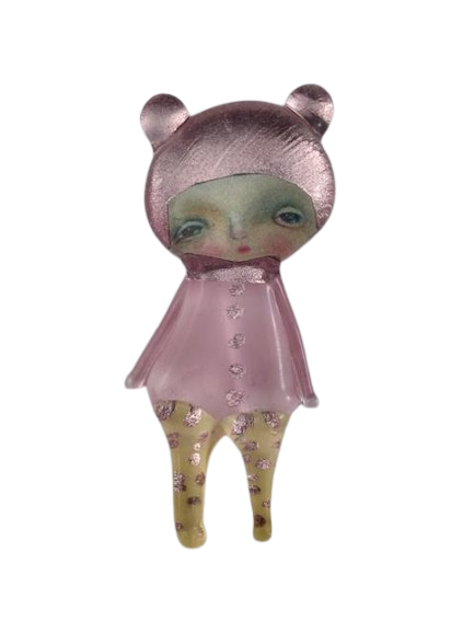 Autorska broszka wykonana z pełnego szkła, wytapiana ręcznie i malowana. Szkło hartowane, najwyższej jakości, bardzo trwałe. Każda z laleczek jest unikatowa - ręcznie malowana, szklana soczewka daje efekt złudzenia optycznego i głębi spojrzenia.