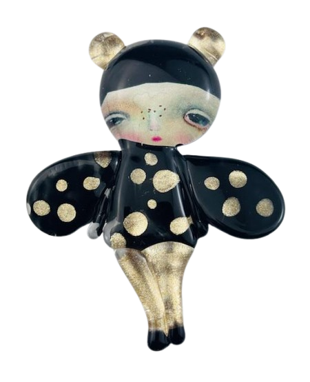 Autorska broszka wykonana z pełnego szkła, wytapiana ręcznie i malowana. Szkło hartowane, najwyższej jakości, bardzo trwałe. Każda z laleczek jest unikatowa - ręcznie malowana, szklana soczewka daje efekt złudzenia optycznego i głębi spojrzenia.