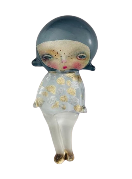 Autorska broszka wykonana z pełnego szkła, wytapiana ręcznie i malowana. Szkło hartowane, najwyższej jakości, bardzo trwałe. Każda z laleczek jest unikatowa - ręcznie malowana, szklana soczewka daje efekt złudzenia optycznego i głębi spojrzenia.