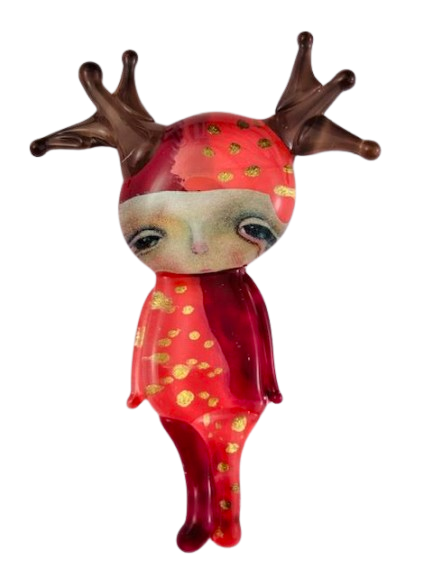 Autorska broszka wykonana z pełnego szkła, wytapiana ręcznie i malowana. Szkło hartowane, najwyższej jakości, bardzo trwałe. Każda z laleczek jest unikatowa - ręcznie malowana, szklana soczewka daje efekt złudzenia optycznego i głębi spojrzenia.
