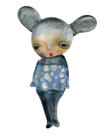 Autorska broszka wykonana z pełnego szkła, wytapiana ręcznie i malowana. Szkło hartowane, najwyższej jakości, bardzo trwałe. Każda z laleczek jest unikatowa - ręcznie malowana, szklana soczewka daje efekt złudzenia optycznego i głębi spojrzenia.