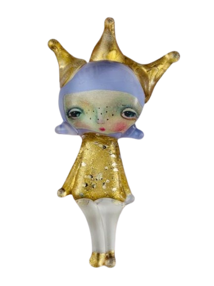 Autorska broszka wykonana z pełnego szkła, wytapiana ręcznie i malowana. Szkło hartowane, najwyższej jakości, bardzo trwałe. Każda z laleczek jest unikatowa - ręcznie malowana, szklana soczewka daje efekt złudzenia optycznego i głębi spojrzenia.