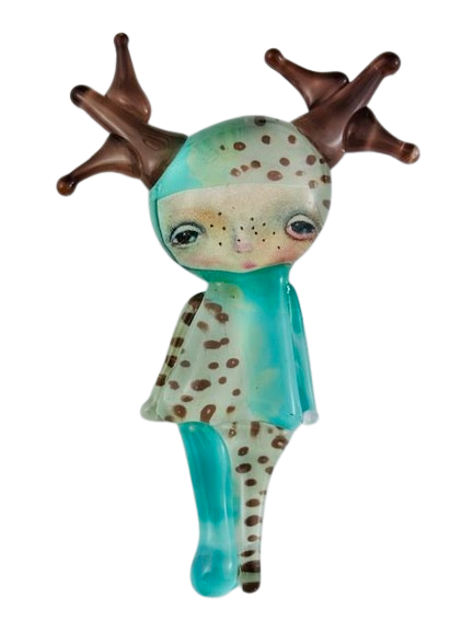 Autorska broszka wykonana z pełnego szkła, wytapiana ręcznie i malowana. Szkło hartowane, najwyższej jakości, bardzo trwałe. Każda z laleczek jest unikatowa - ręcznie malowana, szklana soczewka daje efekt złudzenia optycznego i głębi spojrzenia.