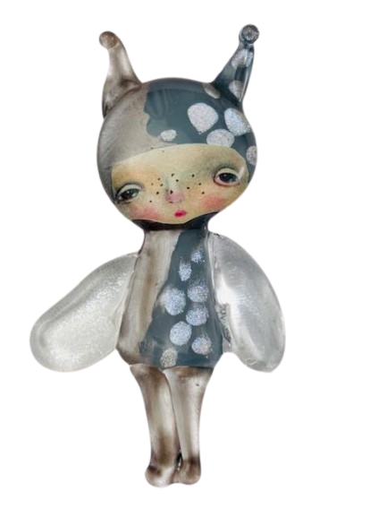 Autorska broszka wykonana z pełnego szkła, wytapiana ręcznie i malowana. Szkło hartowane, najwyższej jakości, bardzo trwałe. Każda z laleczek jest unikatowa - ręcznie malowana, szklana soczewka daje efekt złudzenia optycznego i głębi spojrzenia.