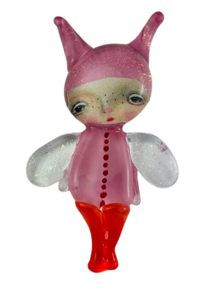 Autorska broszka wykonana z pełnego szkła, wytapiana ręcznie i malowana. Szkło hartowane, najwyższej jakości, bardzo trwałe. Każda z laleczek jest unikatowa - ręcznie malowana, szklana soczewka daje efekt złudzenia optycznego i głębi spojrzenia.