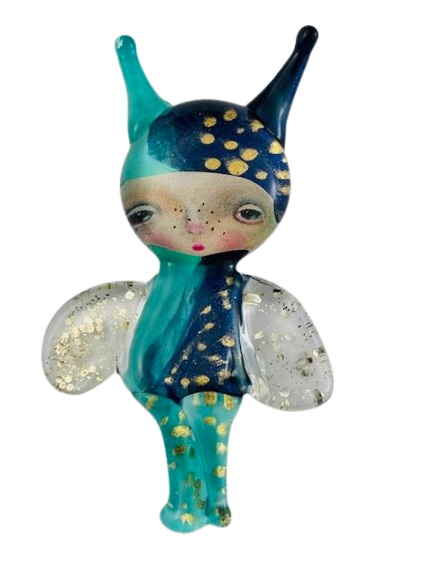 Autorska broszka wykonana z pełnego szkła, wytapiana ręcznie i malowana. Szkło hartowane, najwyższej jakości, bardzo trwałe. Każda z laleczek jest unikatowa - ręcznie malowana, szklana soczewka daje efekt złudzenia optycznego i głębi spojrzenia.