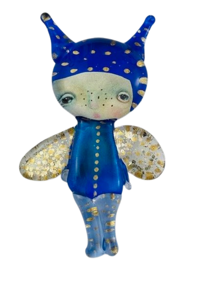 Autorska broszka wykonana z pełnego szkła, wytapiana ręcznie i malowana. Szkło hartowane, najwyższej jakości, bardzo trwałe. Każda z laleczek jest unikatowa - ręcznie malowana, szklana soczewka daje efekt złudzenia optycznego i głębi spojrzenia.