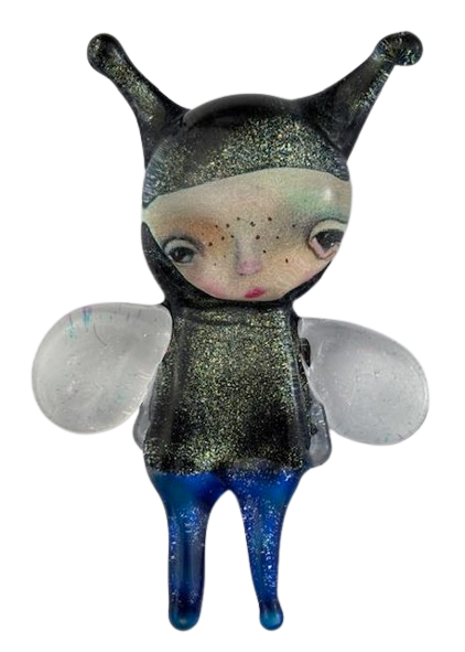Autorska broszka wykonana z pełnego szkła, wytapiana ręcznie i malowana. Szkło hartowane, najwyższej jakości, bardzo trwałe. Każda z laleczek jest unikatowa - ręcznie malowana, szklana soczewka daje efekt złudzenia optycznego i głębi spojrzenia.