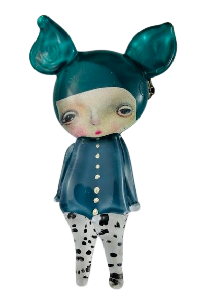 Autorska broszka wykonana z pełnego szkła, wytapiana ręcznie i malowana. Szkło hartowane, najwyższej jakości, bardzo trwałe. Każda z laleczek jest unikatowa - ręcznie malowana, szklana soczewka daje efekt złudzenia optycznego i głębi spojrzenia.