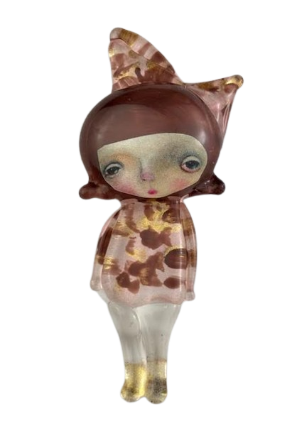 Autorska broszka wykonana z pełnego szkła, wytapiana ręcznie i malowana. Szkło hartowane, najwyższej jakości, bardzo trwałe. Każda z laleczek jest unikatowa - ręcznie malowana, szklana soczewka daje efekt złudzenia optycznego i głębi spojrzenia.