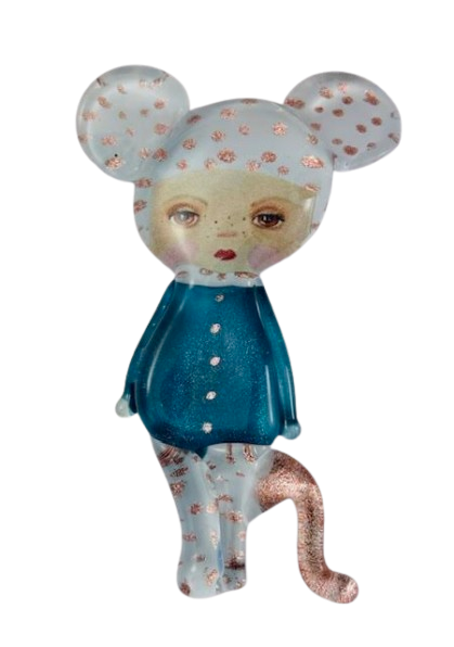 Autorska broszka wykonana z pełnego szkła, wytapiana ręcznie i malowana. Szkło hartowane, najwyższej jakości, bardzo trwałe. Każda z laleczek jest unikatowa - ręcznie malowana, szklana soczewka daje efekt złudzenia optycznego i głębi spojrzenia.