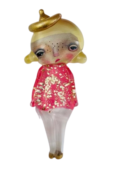 Autorska broszka wykonana z pełnego szkła, wytapiana ręcznie i malowana. Szkło hartowane, najwyższej jakości, bardzo trwałe. Każda z laleczek jest unikatowa - ręcznie malowana, szklana soczewka daje efekt złudzenia optycznego i głębi spojrzenia.
