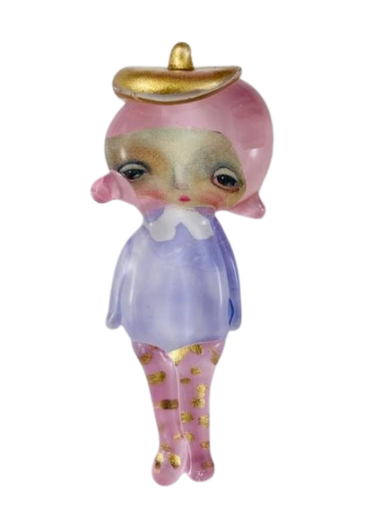 Autorska broszka wykonana z pełnego szkła, wytapiana ręcznie i malowana. Szkło hartowane, najwyższej jakości, bardzo trwałe. Każda z laleczek jest unikatowa - ręcznie malowana, szklana soczewka daje efekt złudzenia optycznego i głębi spojrzenia.