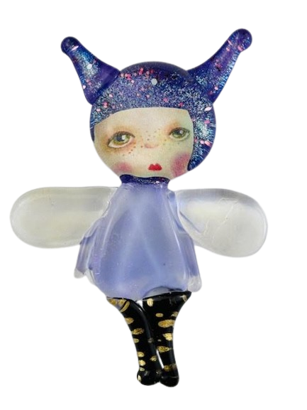 Autorska broszka wykonana z pełnego szkła, wytapiana ręcznie i malowana. Szkło hartowane, najwyższej jakości, bardzo trwałe. Każda z laleczek jest unikatowa - ręcznie malowana, szklana soczewka daje efekt złudzenia optycznego i głębi spojrzenia.