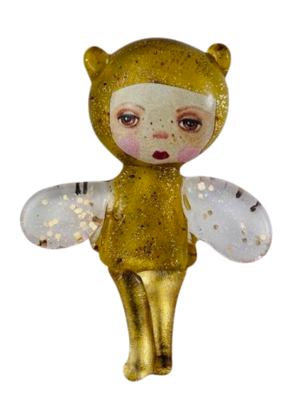 Autorska broszka wykonana z pełnego szkła, wytapiana ręcznie i malowana. Szkło hartowane, najwyższej jakości, bardzo trwałe. Każda z laleczek jest unikatowa - ręcznie malowana, szklana soczewka daje efekt złudzenia optycznego i głębi spojrzenia.