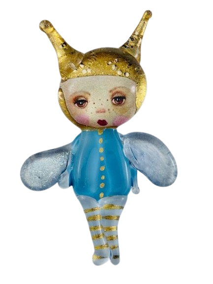 Autorska broszka wykonana z pełnego szkła, wytapiana ręcznie i malowana. Szkło hartowane, najwyższej jakości, bardzo trwałe. Każda z laleczek jest unikatowa - ręcznie malowana, szklana soczewka daje efekt złudzenia optycznego i głębi spojrzenia.